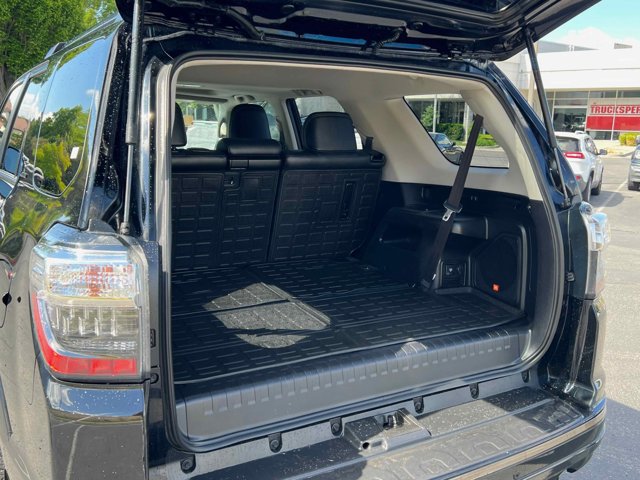 Midnight Black Metallic 2020 Toyota 4Runner Nightshade 4WD 5-Speed Automatic with Overdrive 4.0L V6 SMPI DOHC 4WD, Black/Graphite Leather.Check out our award winning dealership! 5-star google review, drive a little save a lot. 4WD, Black/Graphite Leather, 15 Speakers, 3.727 Axle Ratio, 4-Wheel Disc Brakes, ABS brakes, Air Conditioning, Alloy wheels, AM/FM radio: SiriusXM, Anti-whiplash front head restraints, Apple CarPlay/Android Auto, Auto High-beam Headlights, Auto-dimming Rear-View mirror, Automatic temperature control, Black Power Heated Mirrors, Black Roof Rails, Brake assist, Bumpers: body-color, Compass, Delay-off headlights, Driver door bin, Driver vanity mirror, Dual front impact airbags, Dual front side impact airbags, Electronic Stability Control, Emergency communication system: Safety Connect with 1-year trial, Exterior Parking Camera Rear, Front anti-roll bar, Front Bucket Seats, Front Center Armrest, Front dual zone A/C, Front fog lights, Front reading lights, Front wheel independent suspension, Fully automatic headlights, Garage Door Opener, Garage door transmitter: HomeLink, Heated door mirrors, Heated front seats, Heated/Ventilated Front Bucket Seats, Illuminated entry, Knee airbag, Low tire pressure warning, Memory seat, Moonroof w/Tilt Up & Slide, Navigation System, Nightshade Leather Seat Trim, Occupant sensing airbag, Outside temperature display, Overhead airbag, Overhead console, Panic alarm, Passenger door bin, Passenger vanity mirror, Power door mirrors, Power driver seat, Power moonroof, Power passenger seat, Power steering, Power windows, Radio: Premium JBL Audio w/Navigation, Rear anti-roll bar, Rear seat center armrest, Rear window defroster, Rear window wiper, Remote keyless entry, Right & Left Individual Air Conditioner, Roof rack: rails only, Security system, Speed control, Speed-sensing steering, Split folding rear seat, Spoiler, Steering wheel mounted audio controls, Tachometer, Telescoping steering wheel, Tilt steering wheel, Traction control, Trip computer, Turn signal indicator mirrors, Variably intermittent wipers, Ventilated front seats, and Wheels: 20 Black Alloy.